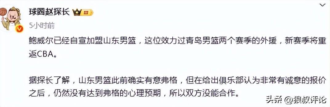 北京时间9月6日,根据媒体人赵探长的报道:“鲍威尔已经自宣加盟山东男篮,这位效力过青岛男篮两个赛季的外援,新赛季将重返CBA。