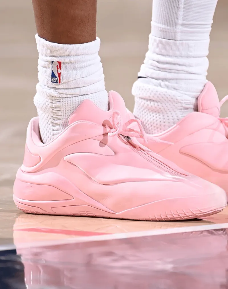 比赛中,亚历山大上脚粉色Converse Shai001“Blush”。